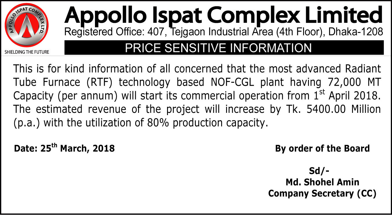 Price Sensitive Information of Appollo Ispat Complex Limited