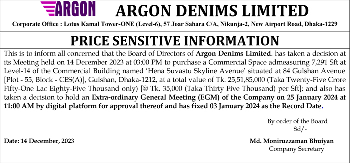Annual Report Dispatch Noitce of Argon Denims Limited