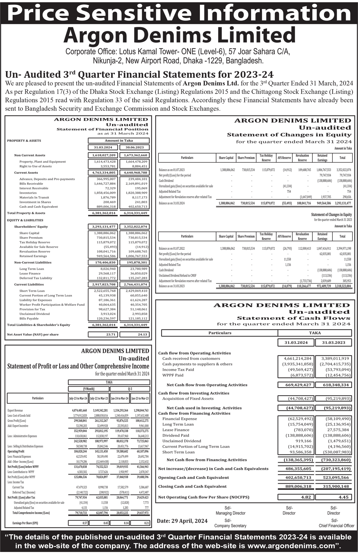 Q2 Un-audited Financial Statements of Argon Denims Limited