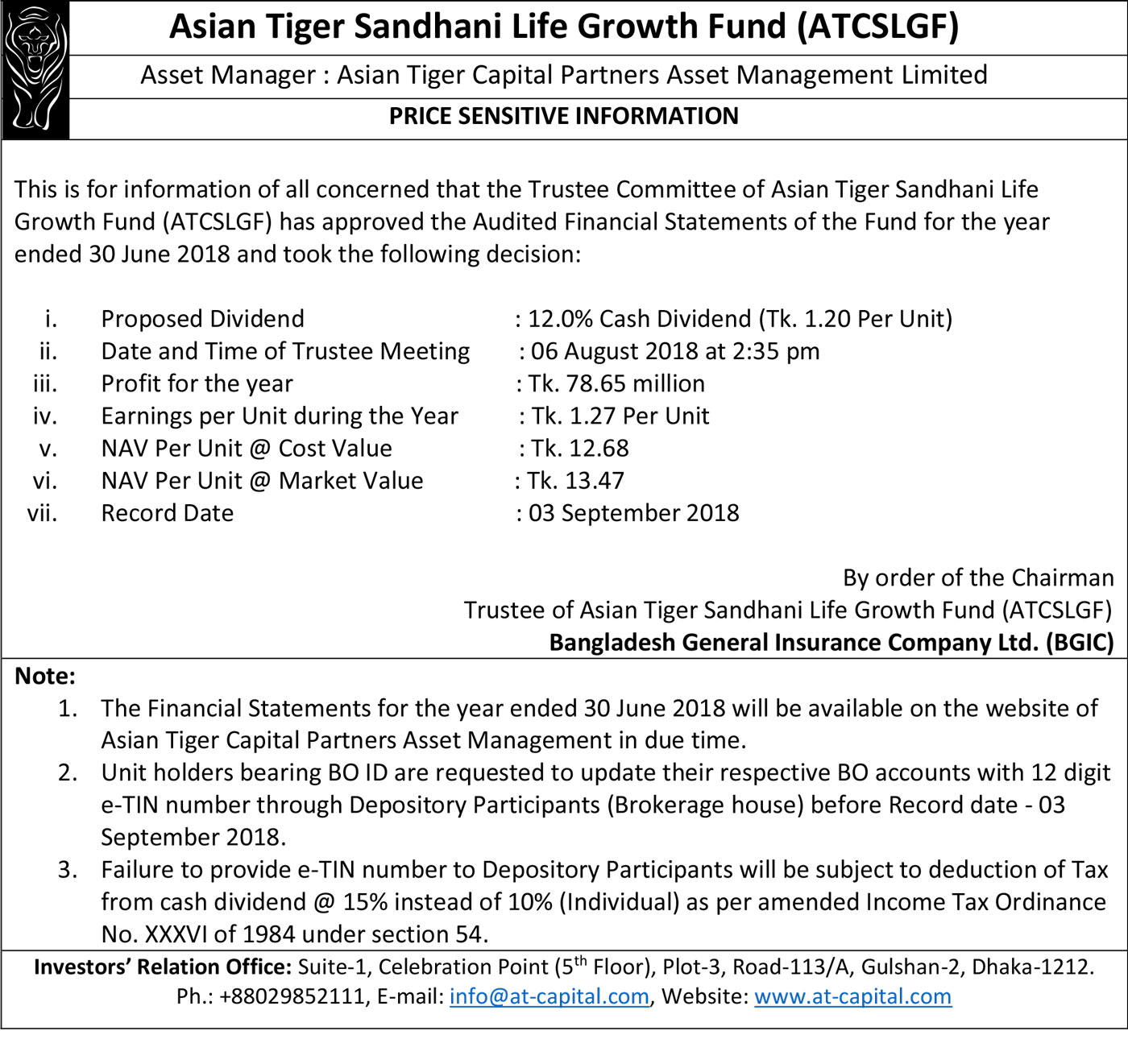 Price Sensitive Information of Asian Tiger Sandhani Life Growth Fund