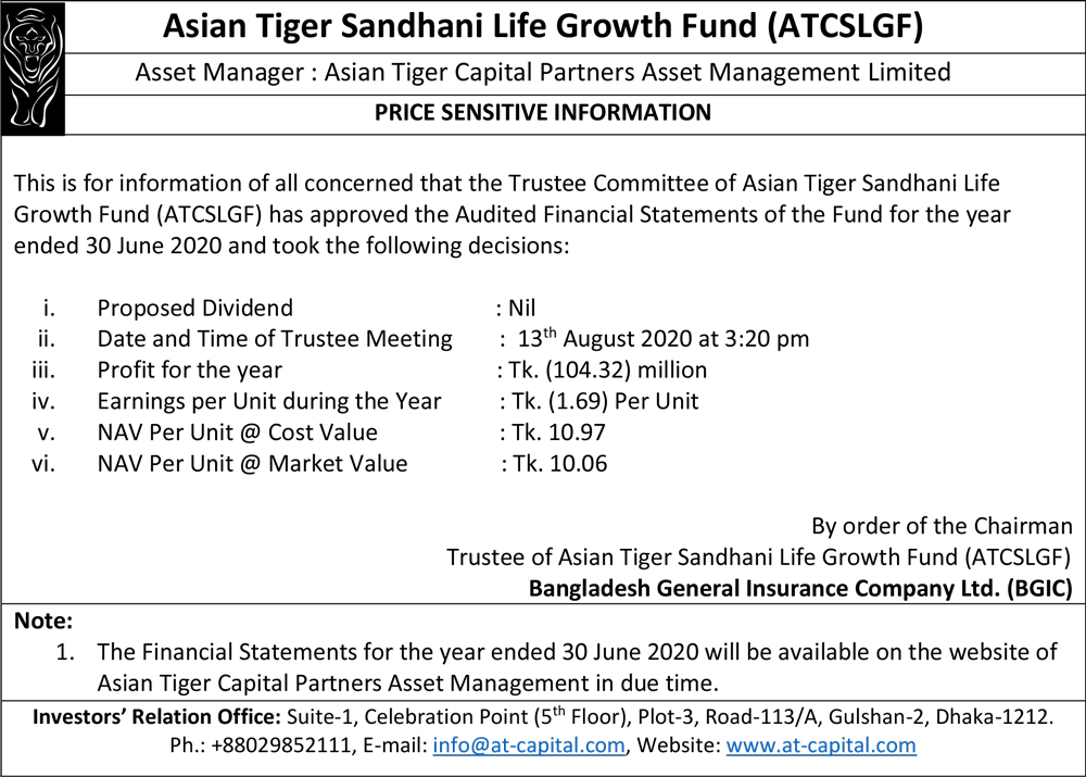 Price Sensitive Information of Asian Tiger Sandhani Life Growth Fund