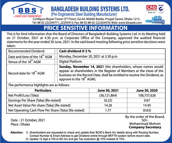 Price Sensitive Information of Bangladesh Building Systems Ltd.