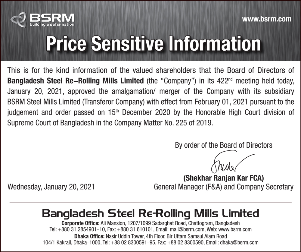 Price Sensitive Information of Bangladesh Steel Re-Rolling Mills Limited