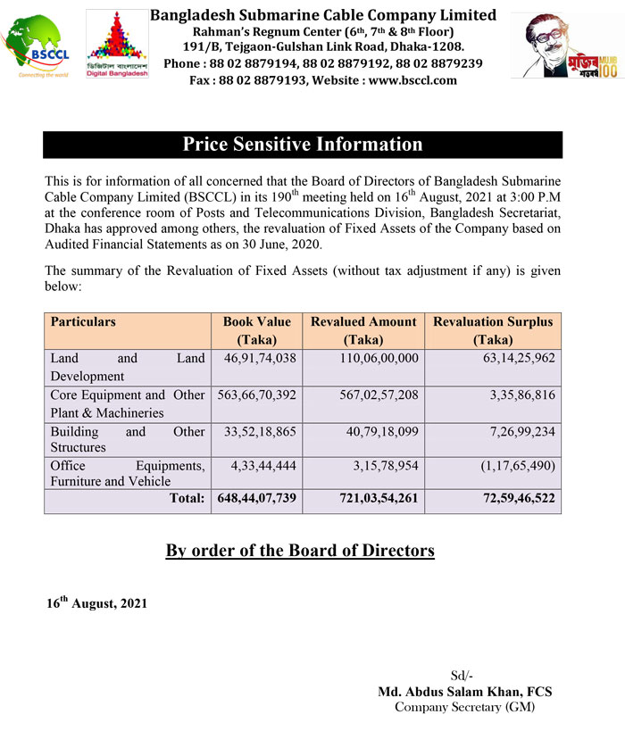 Price Sensitive Information of Bangladesh Submarine Cable Company Limited(BSCCL)