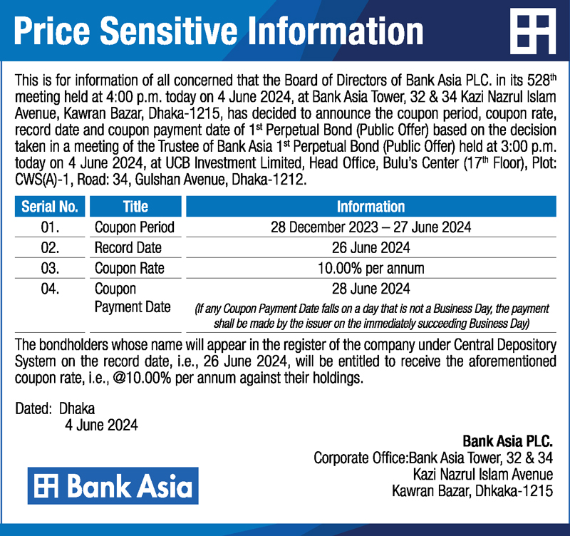 Price Sensitive Information of Bank Asia PLC