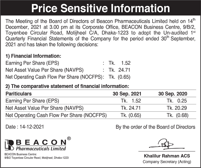 Price Sensitive Information of Beacon Pharmaceuticals Limited