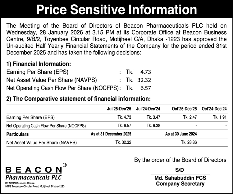 Price Sensitive Information of Beacon Pharmaceuticals Limited