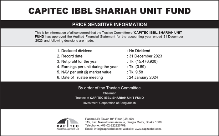 Price Sensitive Information of Capitec IBBL Shariah Unit Fund.