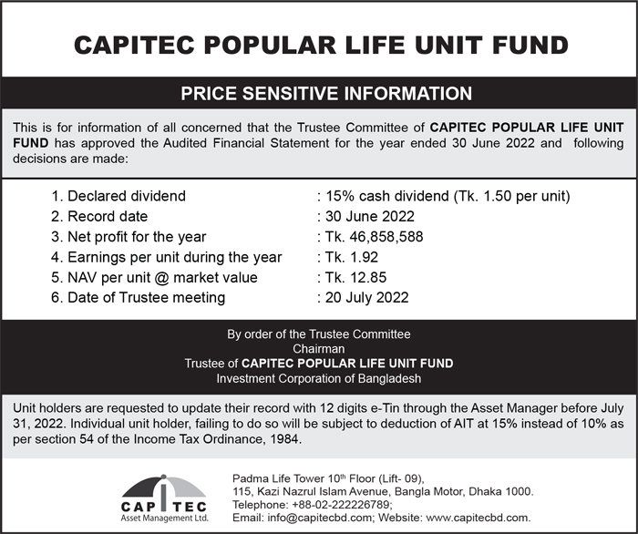 Price Sensitive Information of Capitec Popular Life Unit Fund