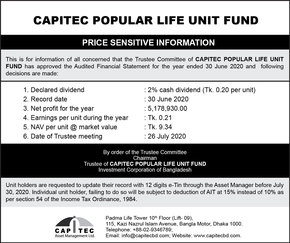 Price Sensitive Information of Capitec Popular Life Unit Fund
