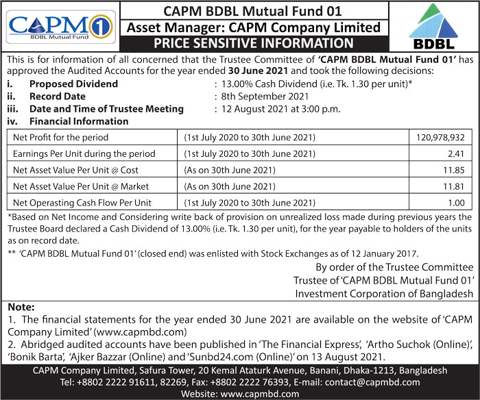 Price Sensitive Information of CAPM BDBL Mutual Fund 01