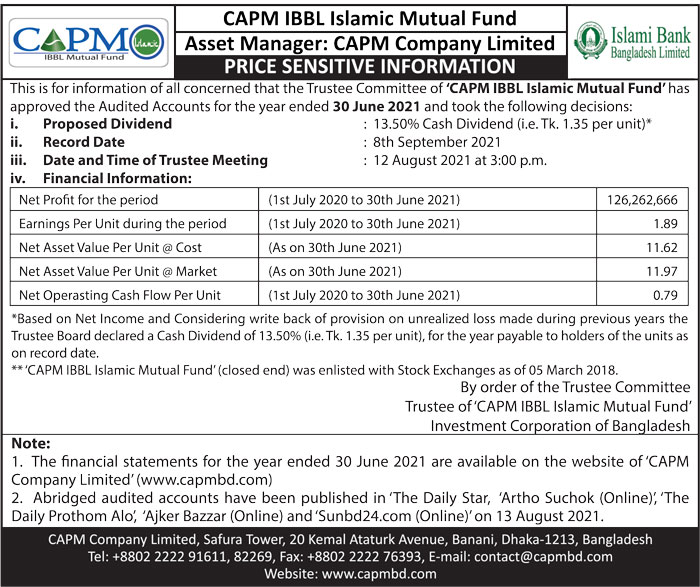 Price Sensitive Information of CAPM IBBL Islamic Mutual Fund