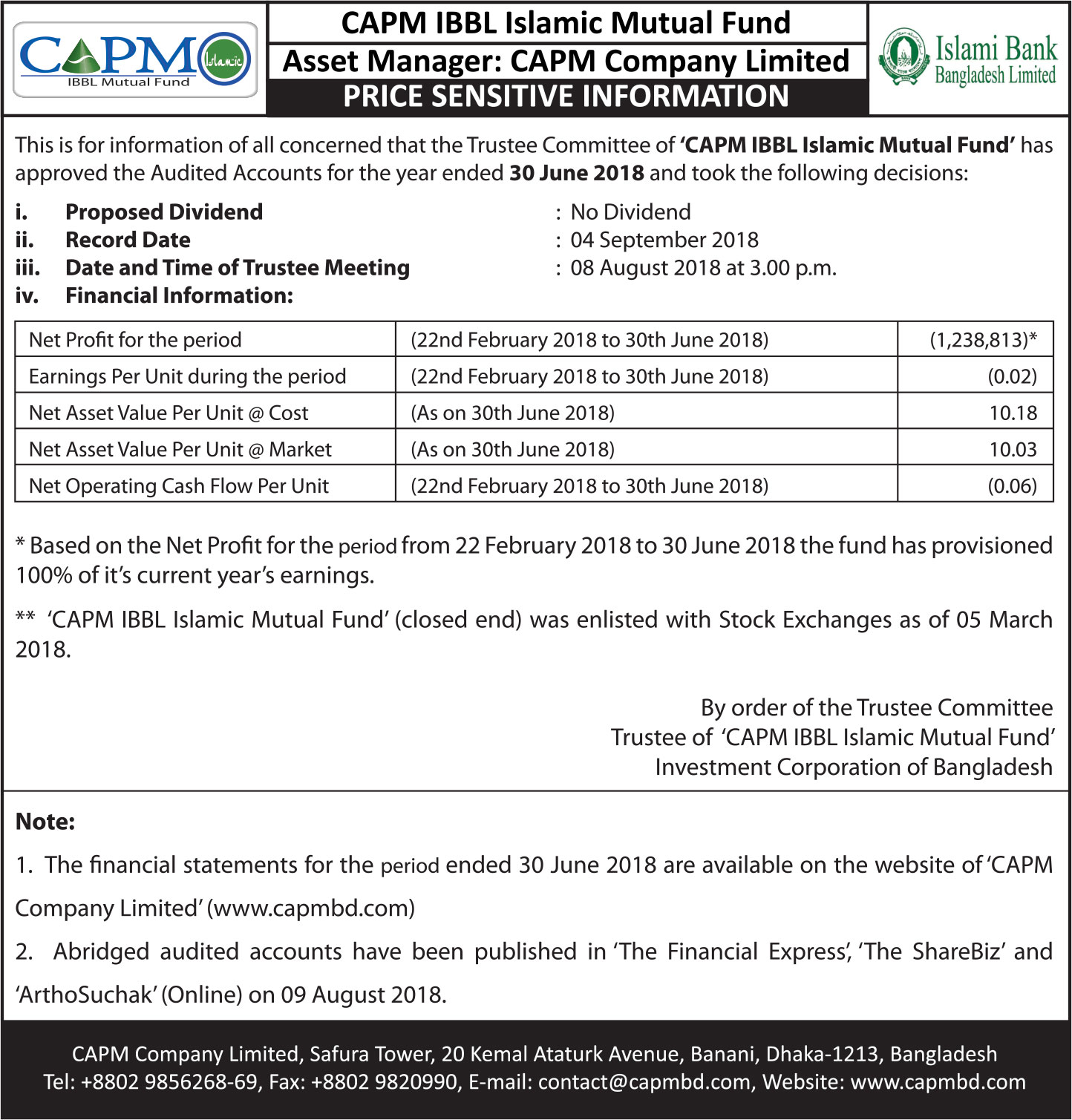 Price Sensitive Information of CAPM IBBL Islamic Mutual Fund