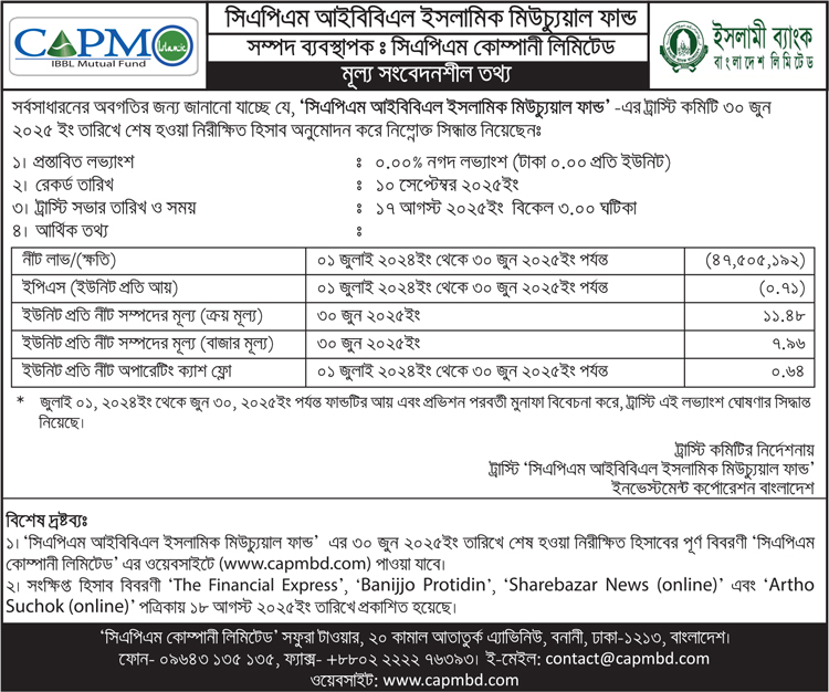 Price Sensitive Information of CAPM IBBL Islamic Mututal Fund
