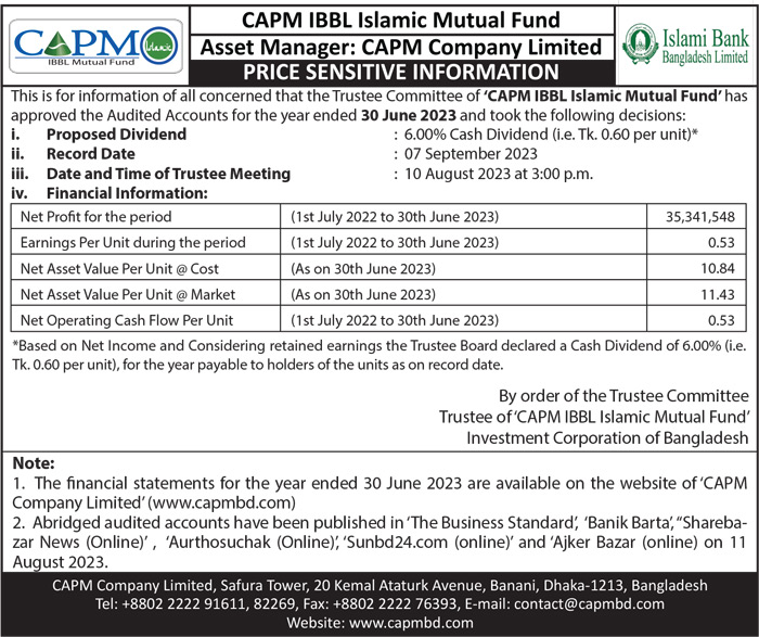 Price Sensitive Information of CAPM IBBL Islamic Mututal Fund