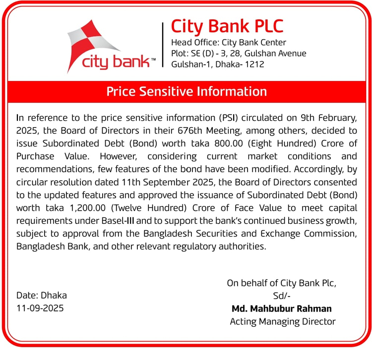 Price Sensitive Information of The City Bank Limited