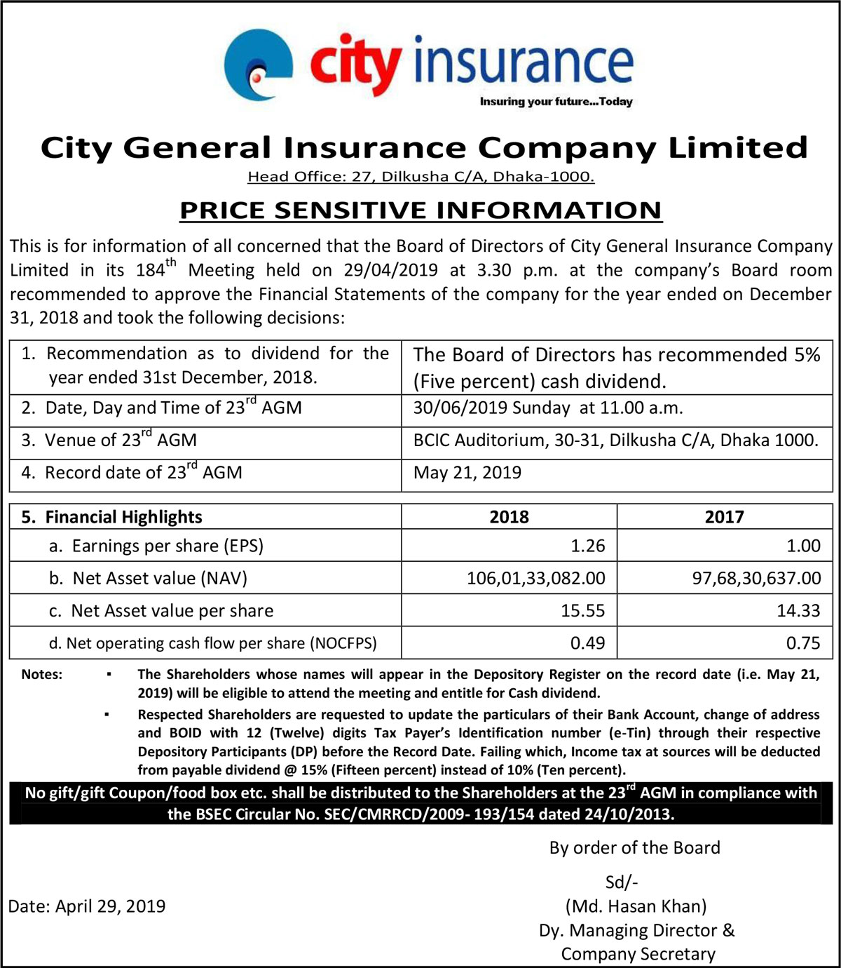 City General Insurance Co. Ltd Half Yearly Financial Statements