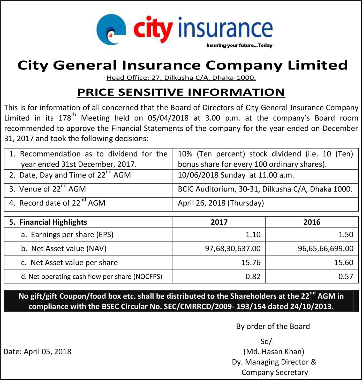 City General Insurance Co. Ltd Half Yearly Financial Statements