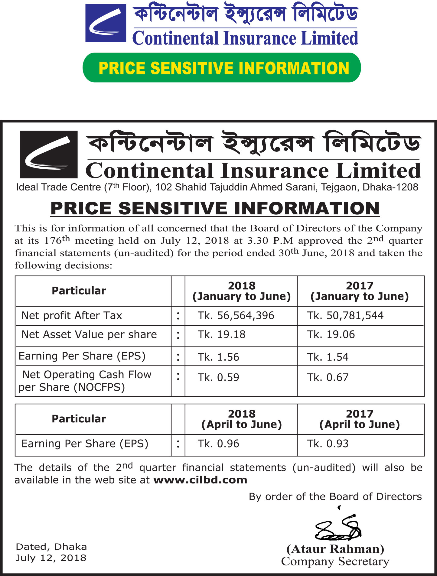 Notice of the 23rd AGM of Continental Insurance Ltd.