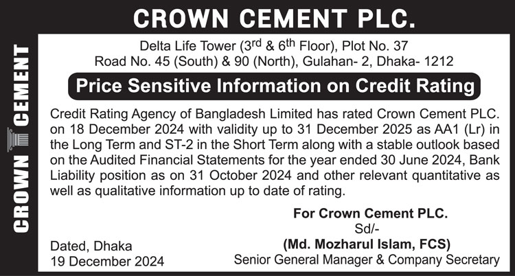 Price Sensitive Information of Credit Rating of Crown Cement PLC.