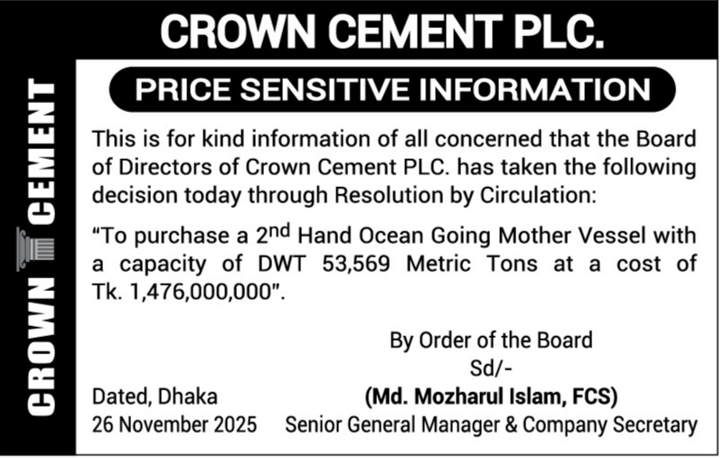 Price Sensitive Information of Crown Cement PLC.