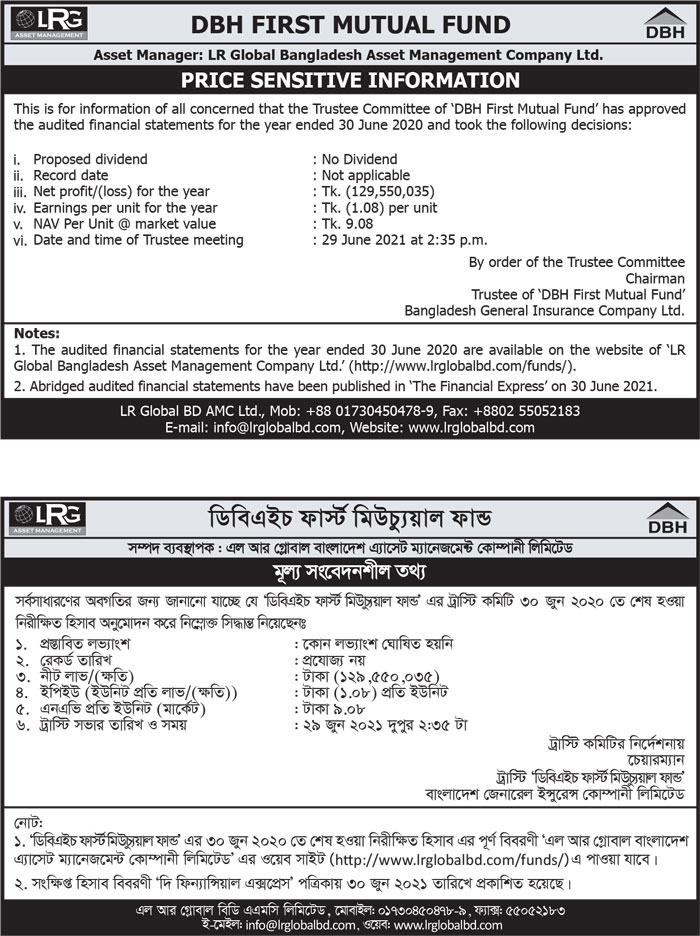Half-Yearly Financial Statements (Unaudited) of DBH First Mutual Fund