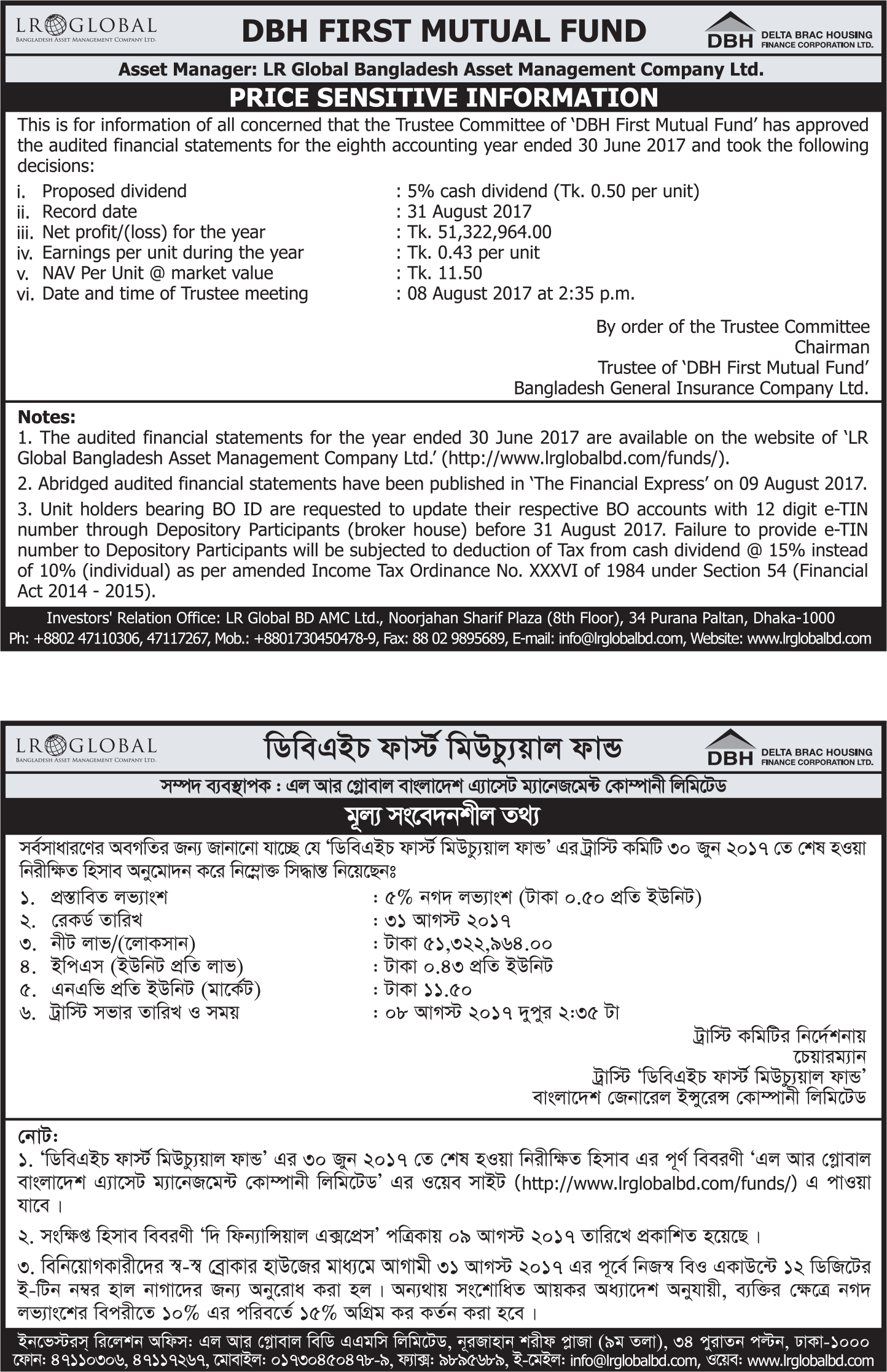 Half Yearly Financial Statements (Unaudited) of DBH First Mutual Fund
