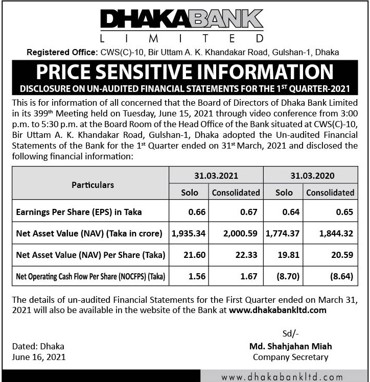 Q3 Un-audited Financial Statements of Dhaka Bank Limited