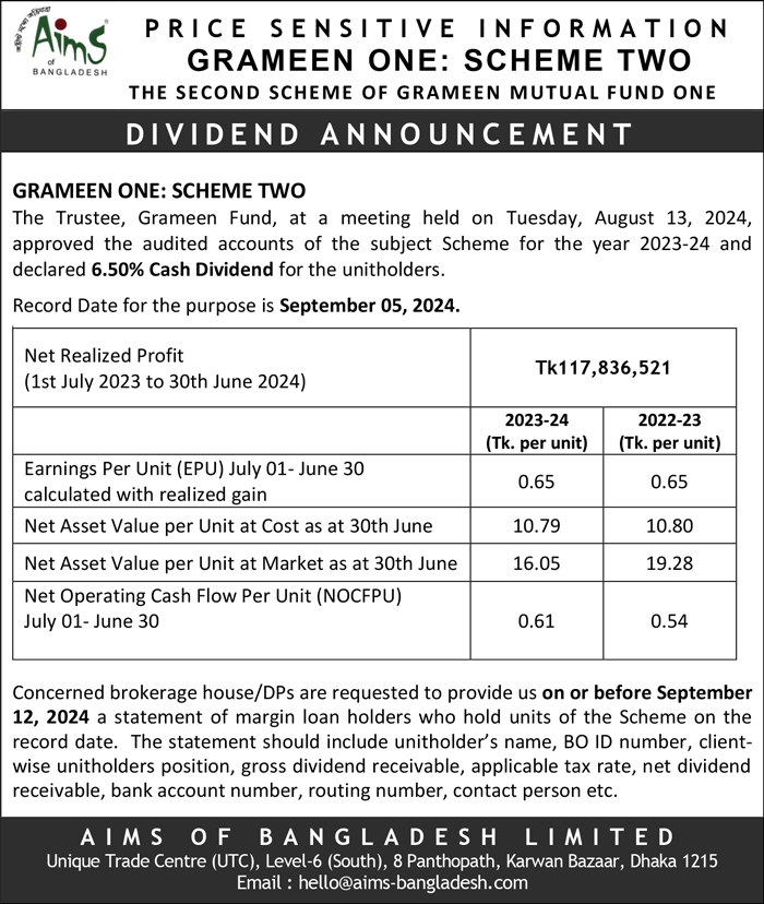 Price Sensitive Information of Dividend Announcement of Grameen One : Scheme Two