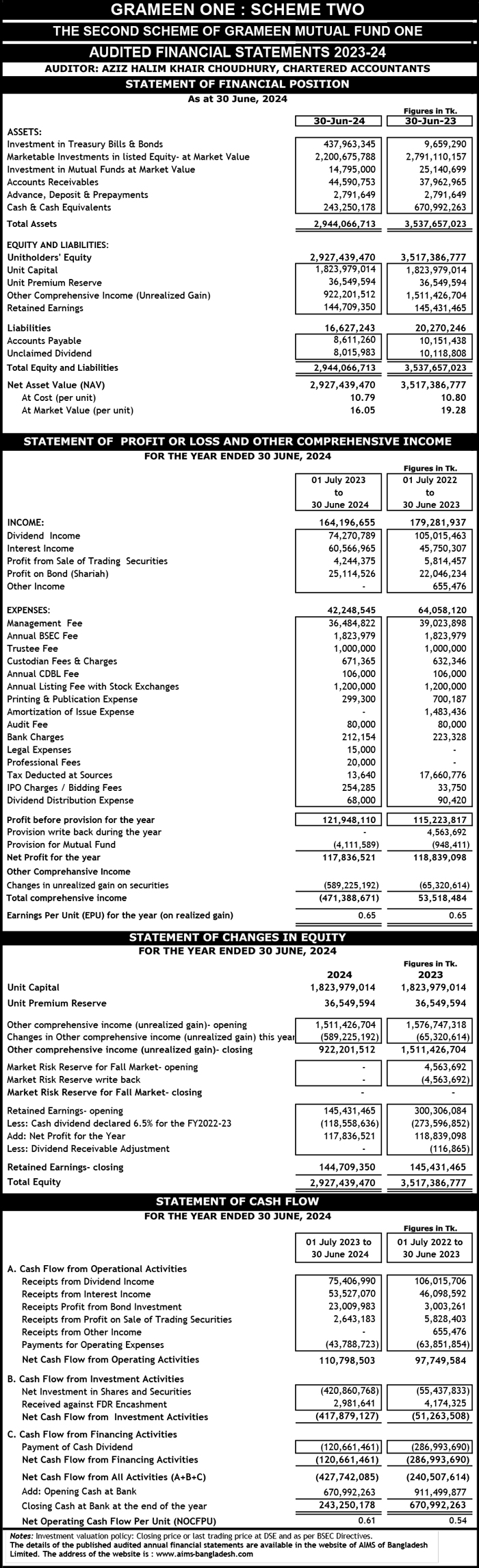 2nd Quarterly Price Sensitive Information (PSI) and Financial Statements of Grameen One: Scheme Two