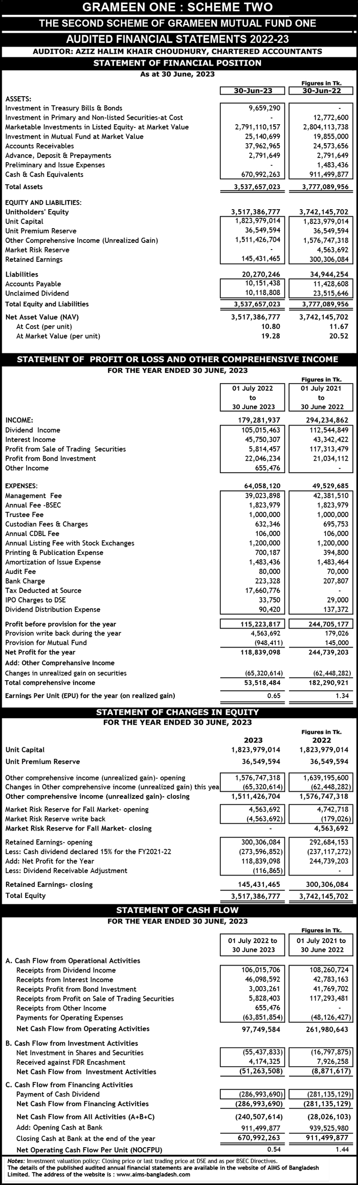 2nd Quarterly Price Sensitive Information (PSI) and Financial Statements of Grameen One: Scheme Two