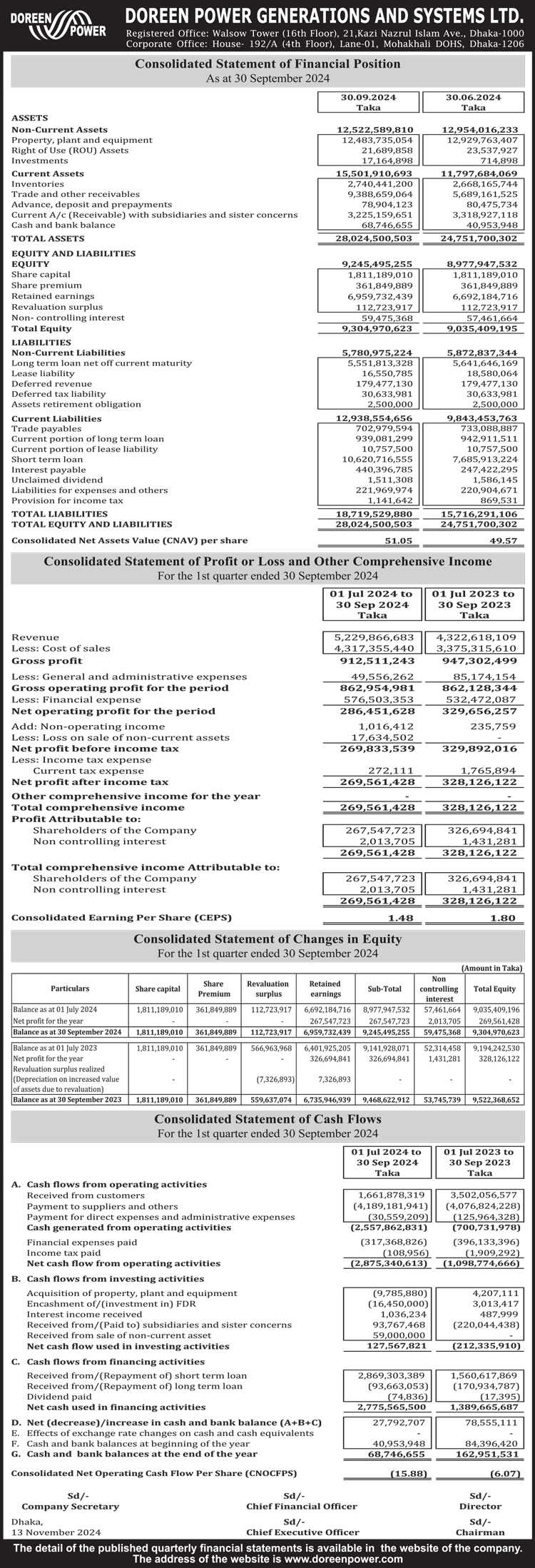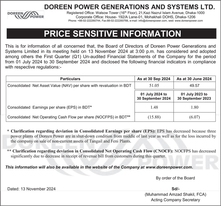 Price Sensitive Information of Doreen Power Generations and Systems Limited