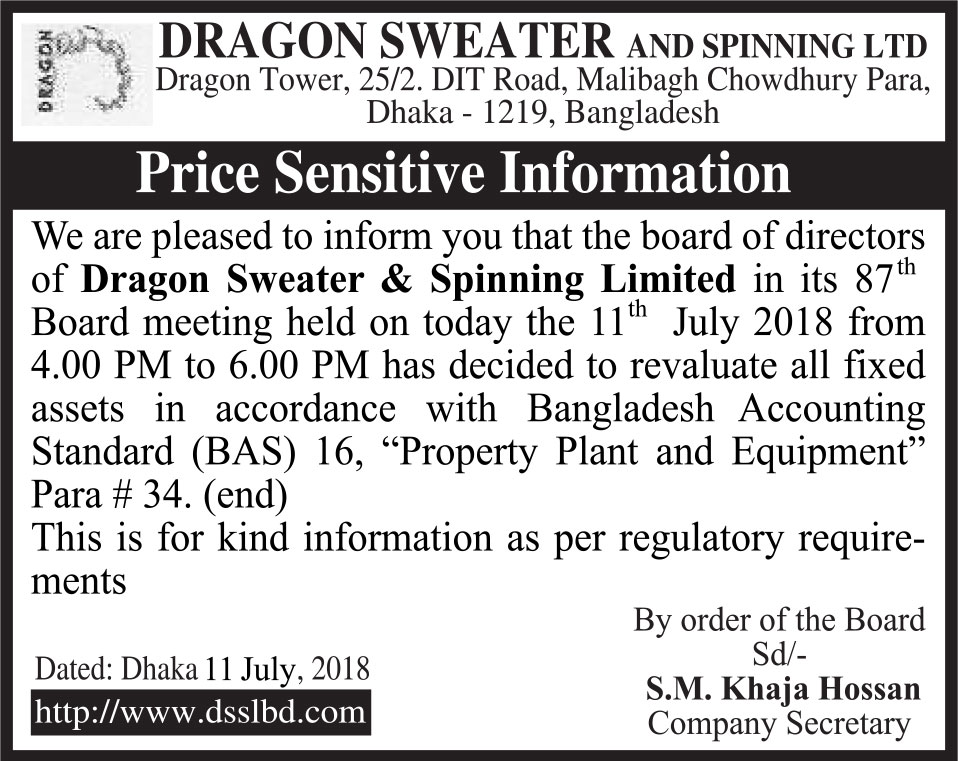 Price Sensitive Information of Dragon Sweater & Spinning Ltd.