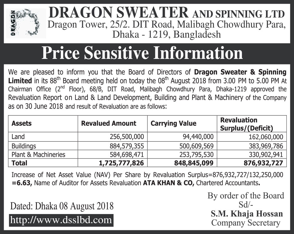 Price Sensitive Information of Dragon Sweater & Spinning Ltd.