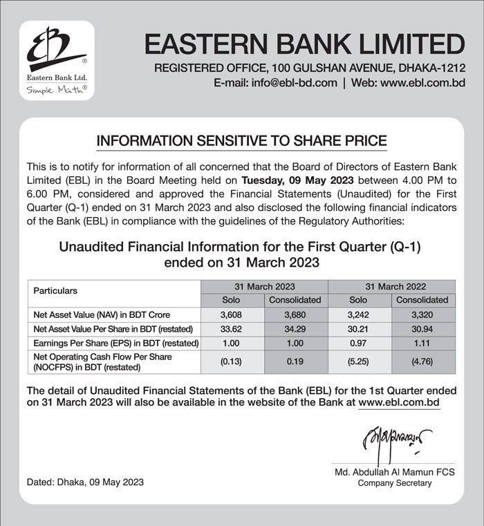 Information Sensitive to Share Price of Eastern Bank Ltd