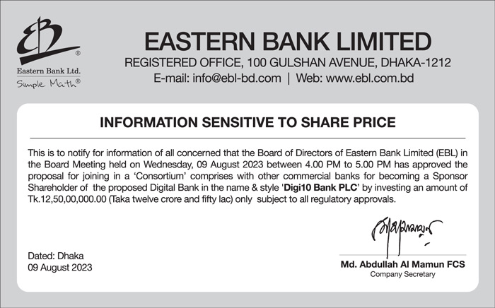 Information Sensitive to Share Price of Eastern Bank Ltd