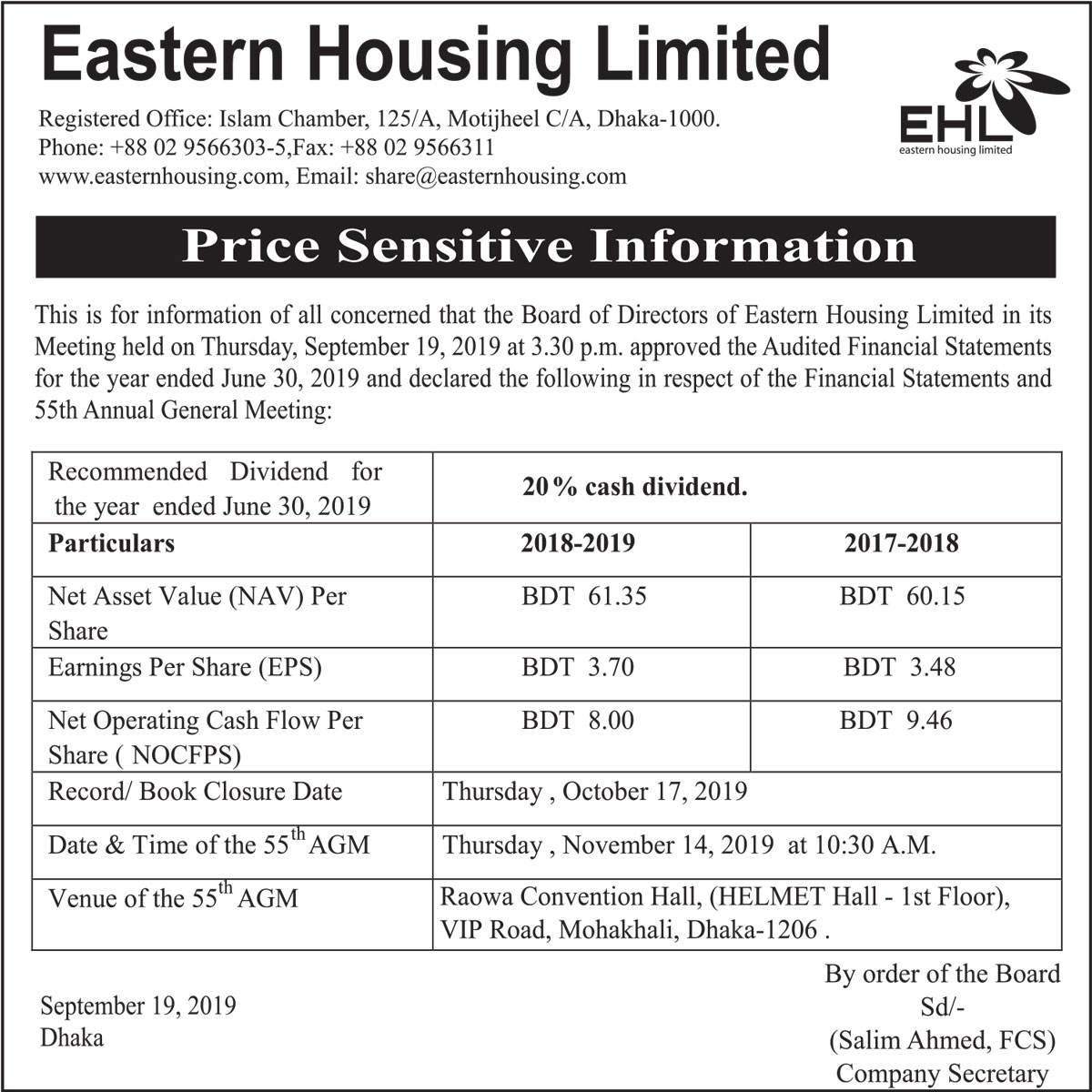 Q1 Financial Statements (Un-audited) of Eastern Housing Limited