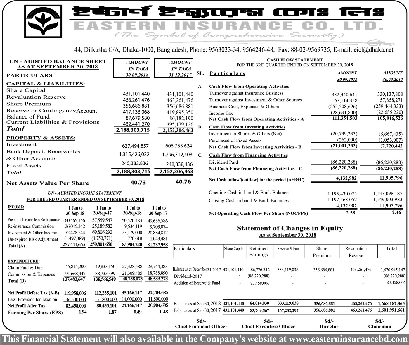 Q3 Financial Statements of Eastern Insurance Co. Ltd.