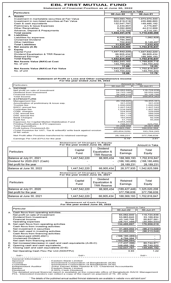 EBL First Mutual Fund Price Sensitive Information