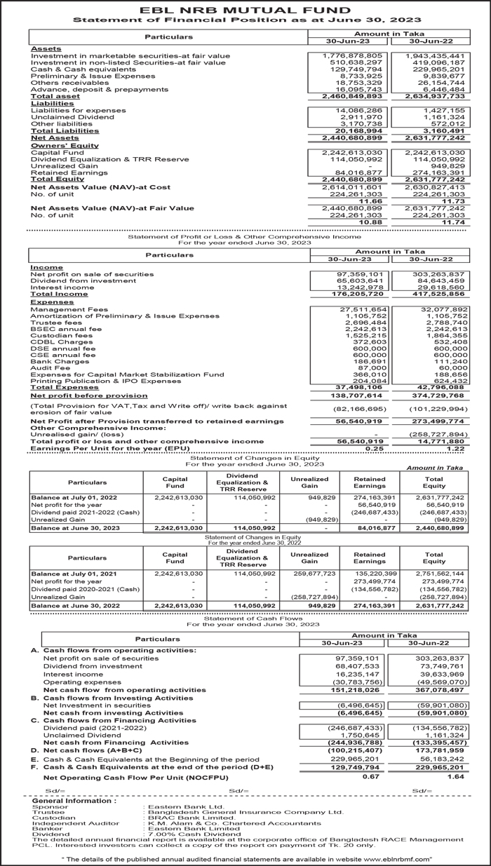 Un-audited Statements of Financial Position of EBL NRB Mutual Fund