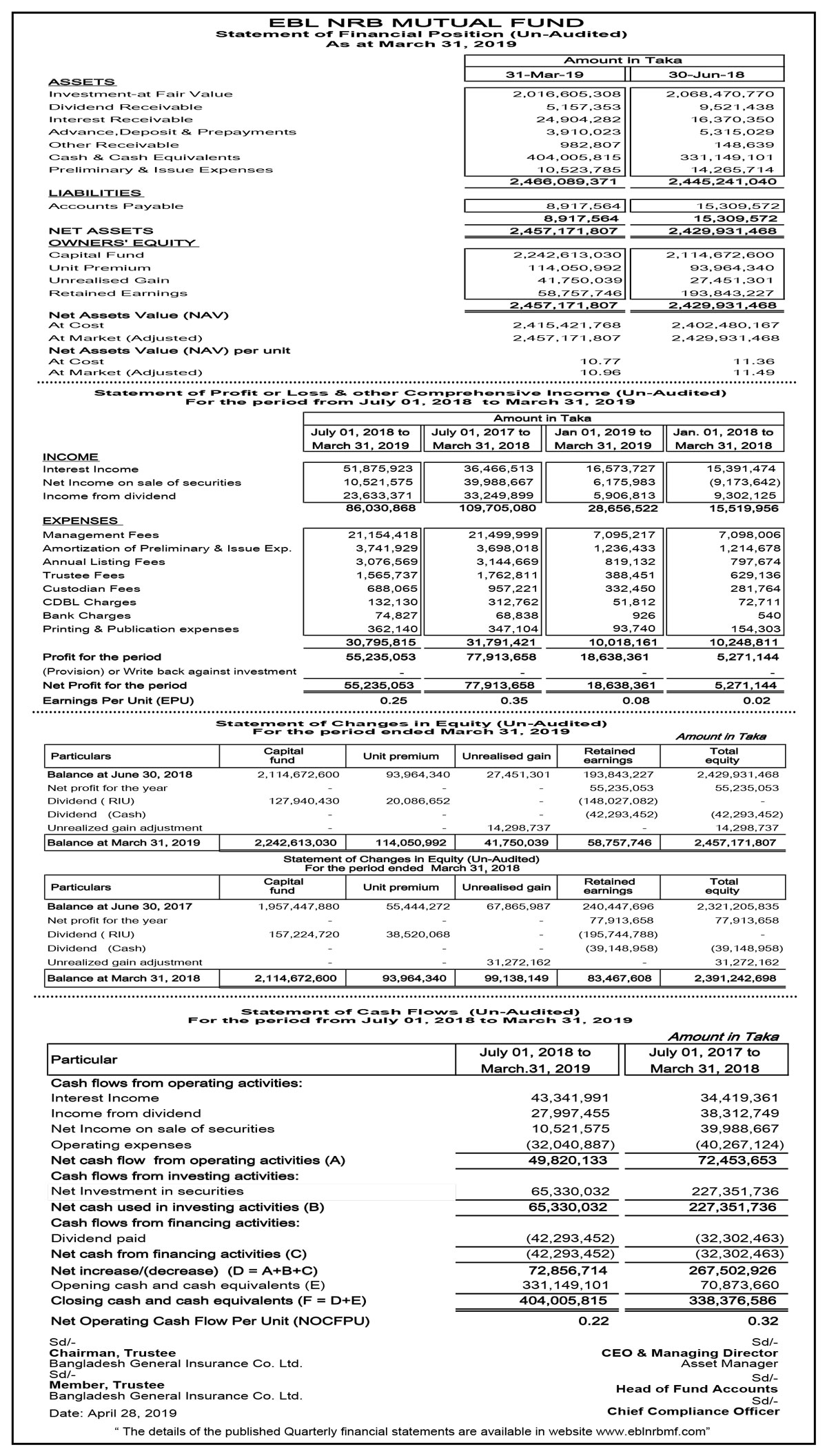Un-audited Statements of Financial Position of EBL NRB Mutual Fund