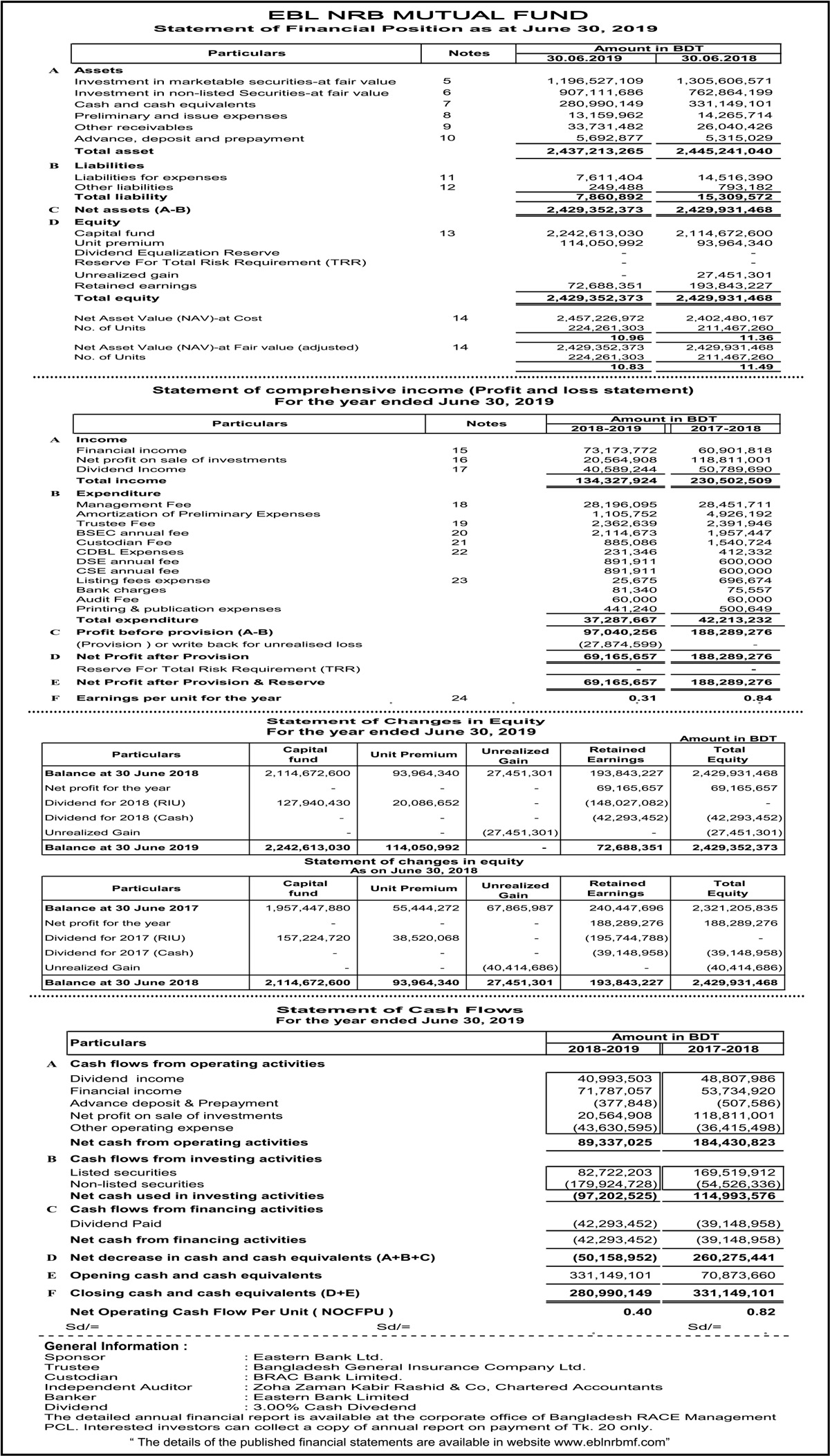 Un-audited Statements of Financial Position of EBL NRB Mutual Fund