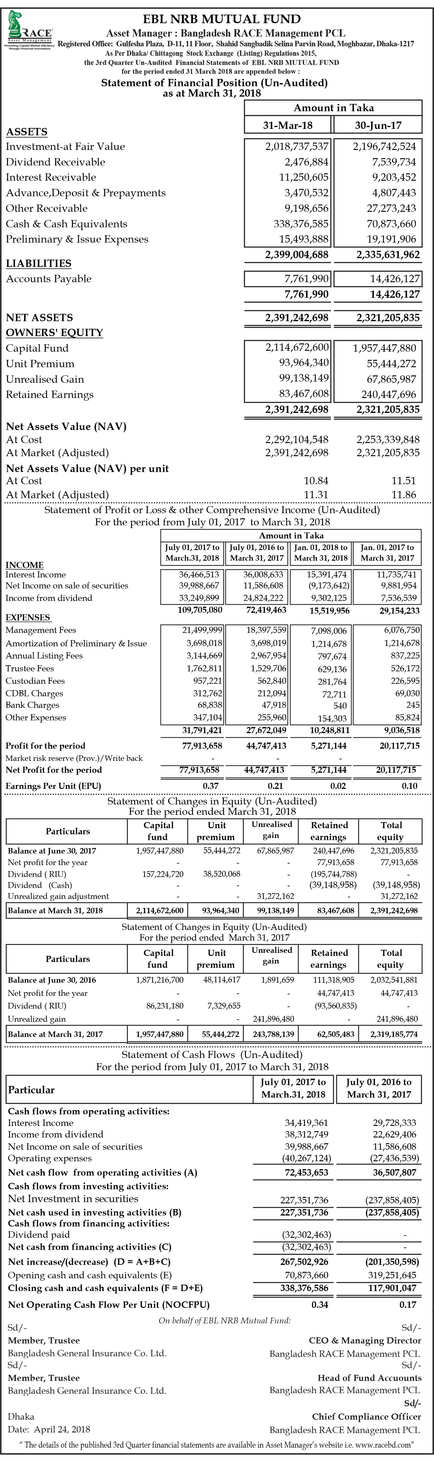Un-audited Statements of Financial Position of EBL NRB Mutual Fund