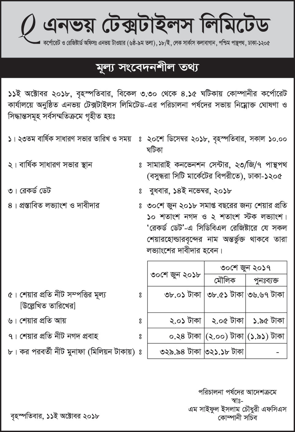 Half Yearly Un-audited Financial Statements of Envoy Textiles Limited