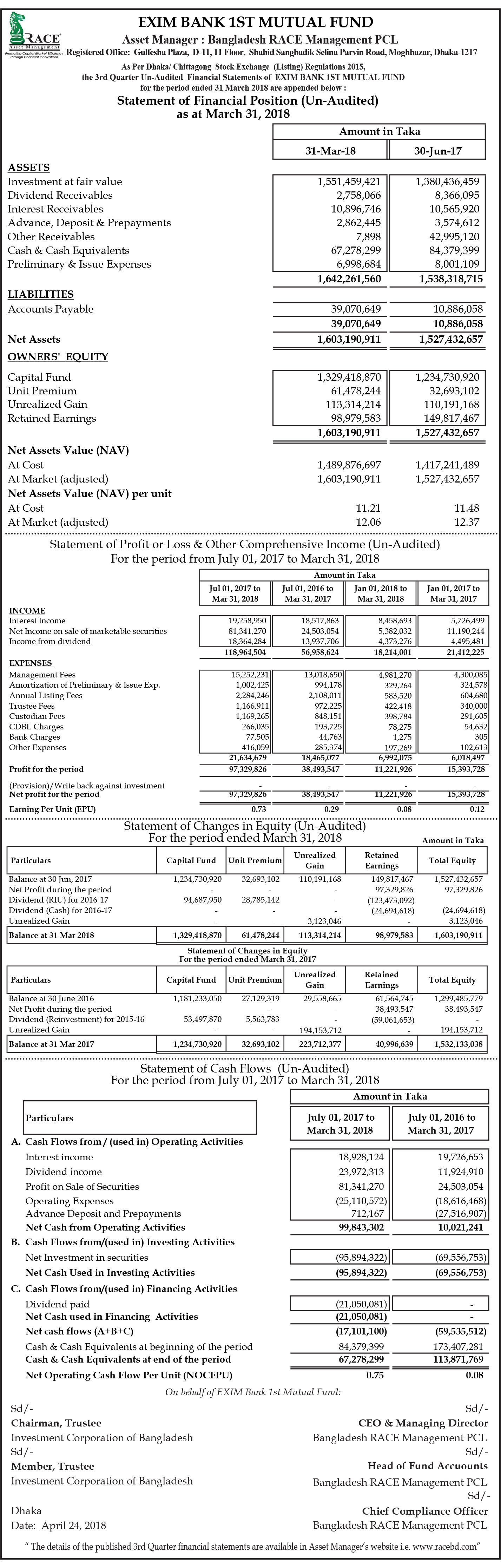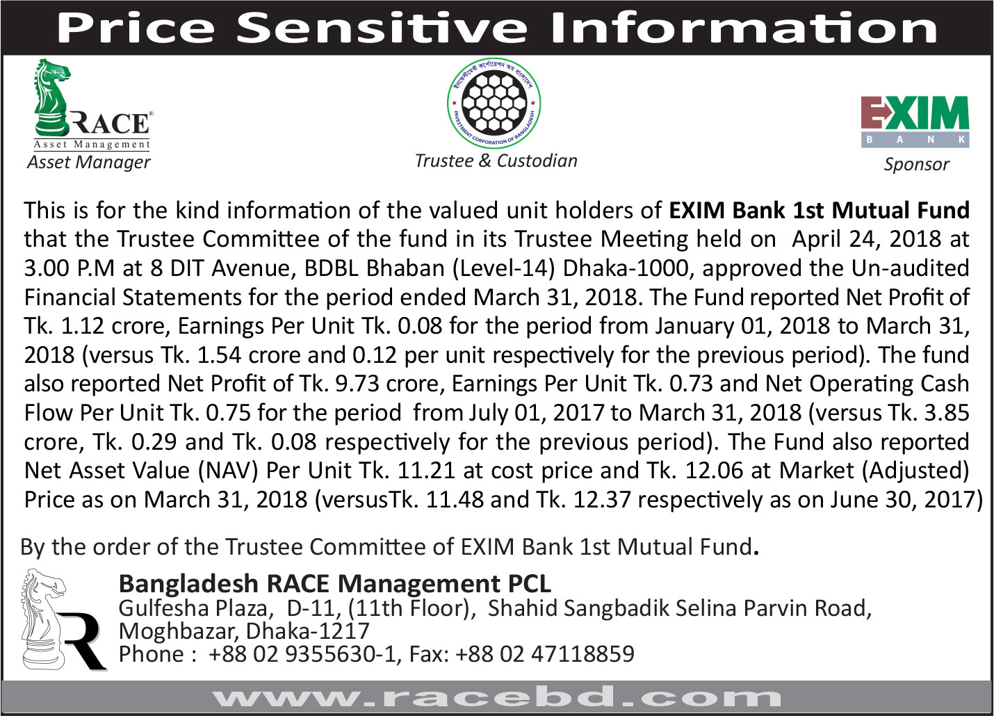 Price Sensitive Information of EXIM Bank 1st Mutual Fund