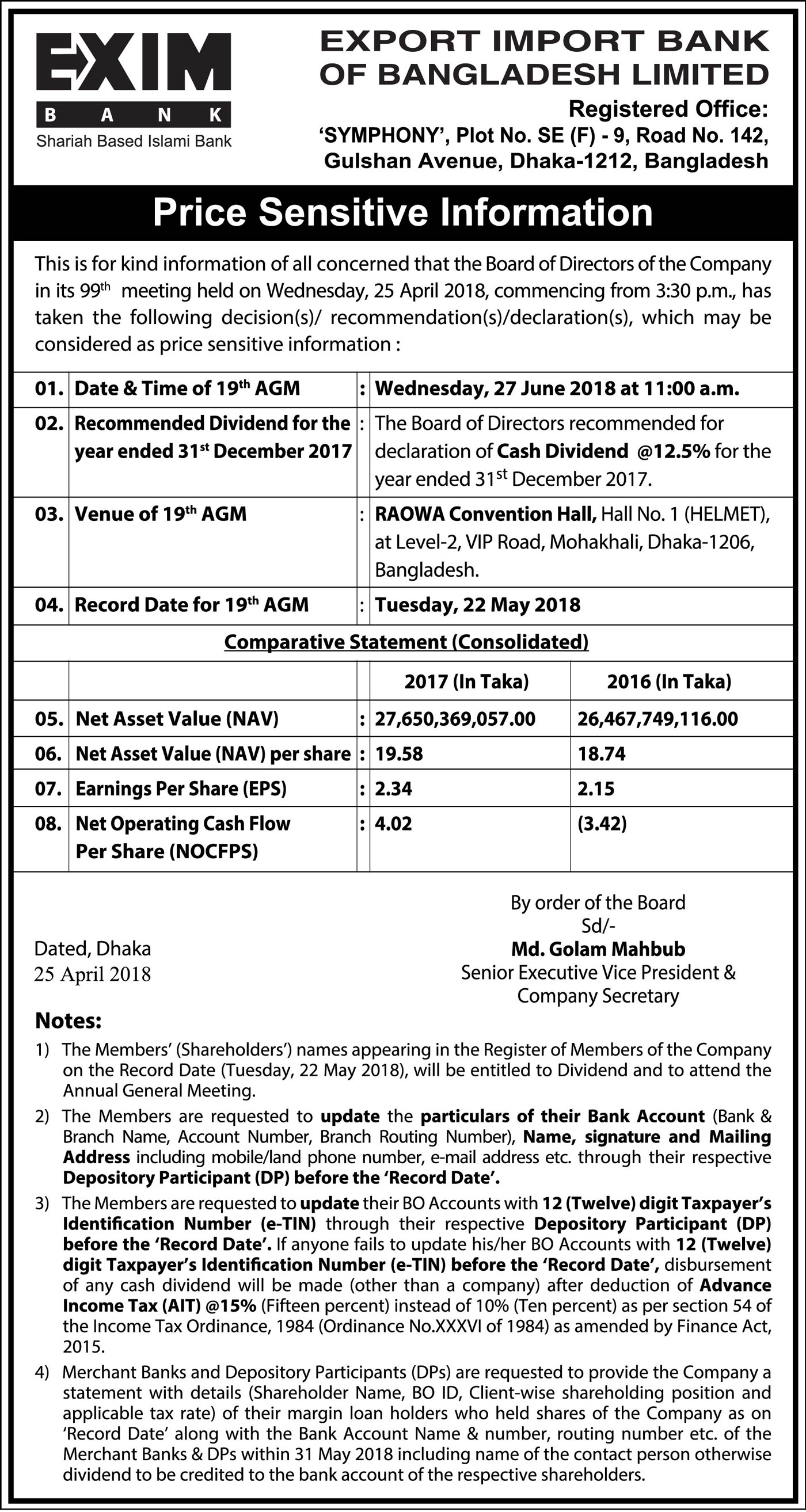 Half Yearly Un-audited Financial Statements of EXIM Bank