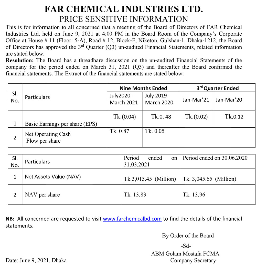 Price Sensitive Information of Far FAR Chemical & Textile Ind. PLC