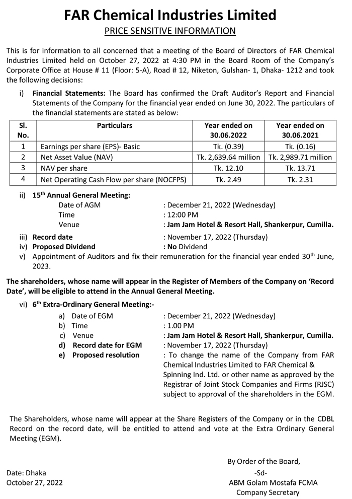 Notice of the 47th AGM of Monno Agro & General Machinery Limited