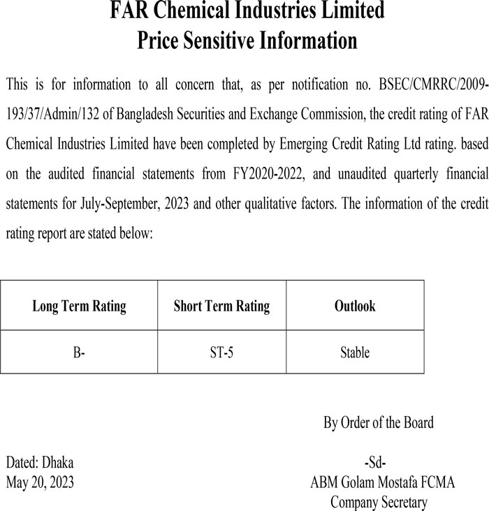 Price Sensitive Information of Far FAR Chemical & Textile Ind. PLC