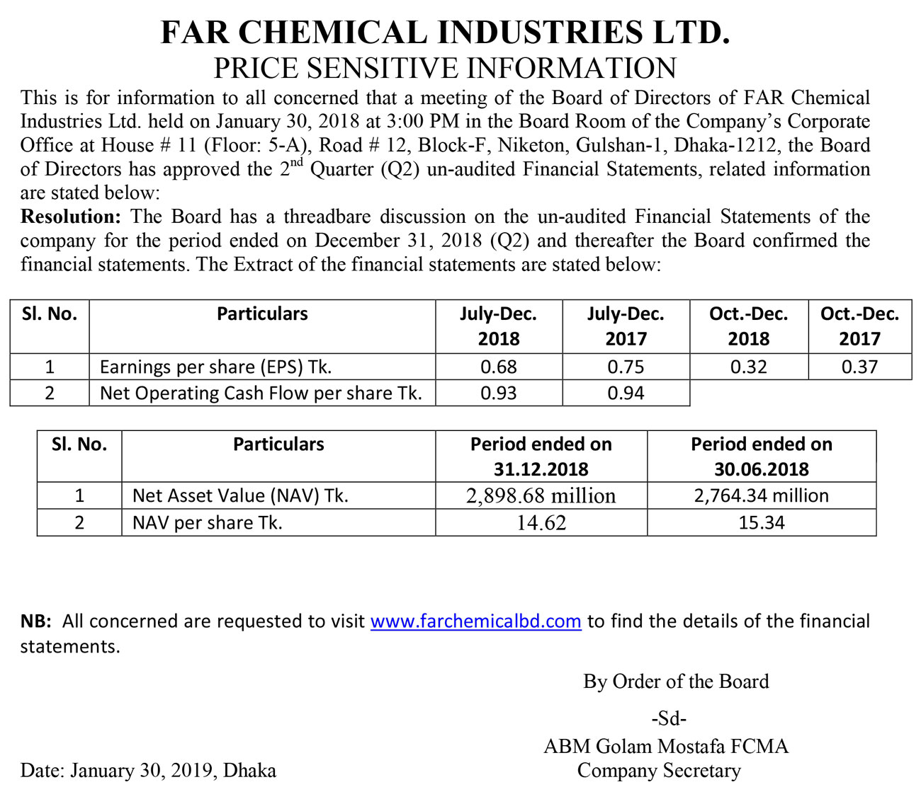 Price Sensitive Information of FAR Chemical & Textile Ind. PLC